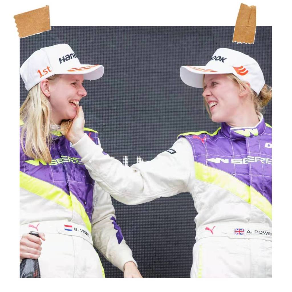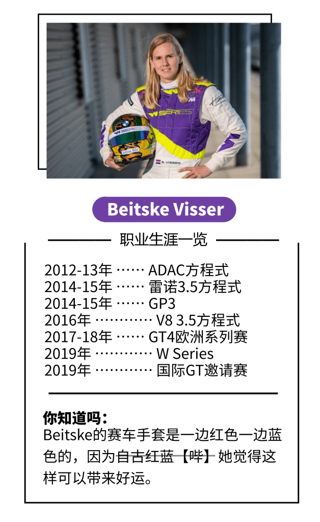 那么这个题外话和我们今天要介绍的W Series年度亚军Beitske Visser什么关系呢?虽然Visser并没有生在弗里斯兰,但她的家人都来自那里,从小她的头盔上就有一圈省旗配色,现在也依然在一直沿用。在谢幕战Brands Hatch登上领奖台时,也用了这个可爱省旗。