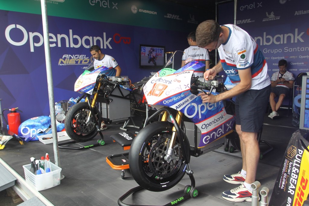 GB: The bike is heavier now because of the battery. They are working to find a solution to reduce the weight of the battery. It’s a new category, they need to find the balance of equal material for everyone, cost efficiency, and also give the team something nice to have a race. It’s not easy to find the balance.