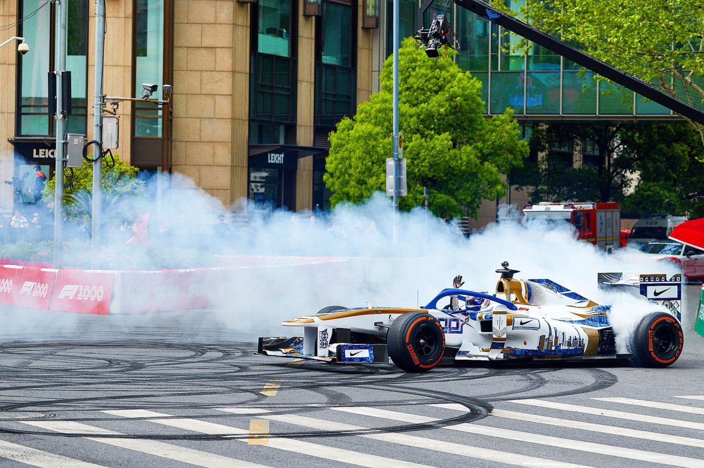 2019年4月,为了庆祝F1第1000场比赛,一辆专门为路演改装的、印着纪念涂装的F1赛车,惊现上海新天地的街道。驾驶这辆赛车的,正是我们今天的主角——Jessica Hawkins