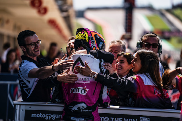 On October 12, 2003, Dani Pedrosa won his first-ever world championship title after winning the Malaysian GP at Sepang International Circuit. Over ten thousand kilometers away in his home country Spain, an 8-year-old girl watching TV made herself a promise – I wanna be in MotoGP one day. This is how Angela Benavente’s journey started with the MotoGP world. Twenty years later at Jerez, Angela is the Data Engineer for Angeluss MTA Team and her team achieved a back-to-back win in the Moto3 class after US GP. In the same paddock, Pedrosa made a wild card entrance for KTM and finished 7th in the main race. What a dream come true for the little girl.