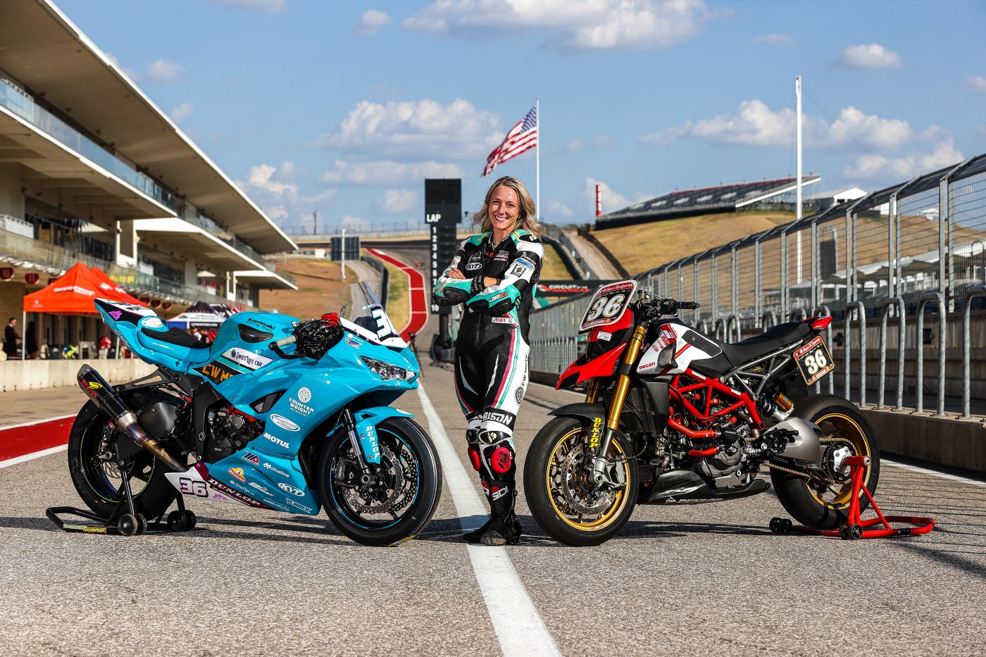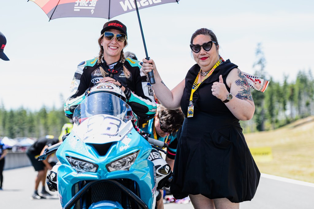 When Mallory was first applying, she applied on her own, planning to run her own team. Now she has joined Maddi Patterson’s new WorldWCR team Sekhmet Motorcycle Racing. “When I received their email saying I was accepted and I needed to put down a deposit, I was a bit panicked. Because I didn’t really secure funding as a team manager. It was hard to secure funding when you didn’t really know if you would be getting in. So I put up a post for a crowdfunding with my current fan base. Maddi and I had some mutual friends, she reached out to me. We are very like-minded individuals about what our goals were, what we’re trying to accomplish with the team and the championship. Within a matter of days, I joined her team.”