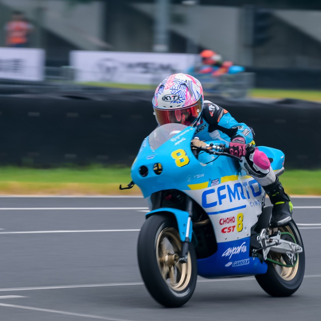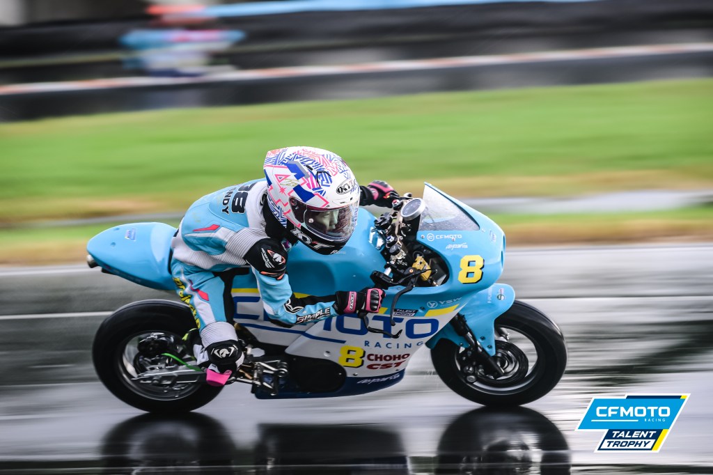 Qualifying and Race 1 of CFMOTO Talent Trophy were both conducted in wet conditions, which is new for Candy. She crashed out in the qualifying but managed to race from last to fifth in Race 1, proving that she learned fast in the complicated situation. Although when we talked to her dad, he said he was gripping on the bars behind the tyre wall so hard, that he felt he would break the iron fence.