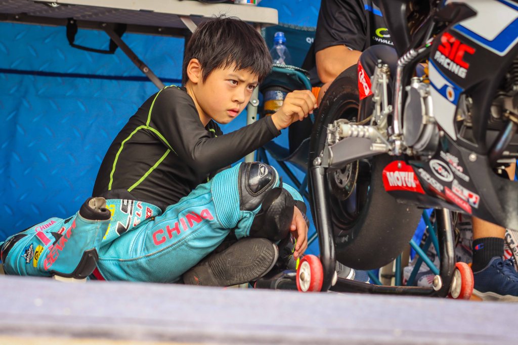 Shortly after her first outing on a minibike, she participated in her first race. Initially riding with her dad as her coach, last year, Jingjing started riding with former CSBK rider XIAO Jin (肖进). This also means Jingjing needed to move from Guangxi Province to Jingzhou, Hubei Province with her dad and grandma. “My dad knew my coach from his own riding time. We moved to Jingzhou last year. I fitted into my new school easily.”