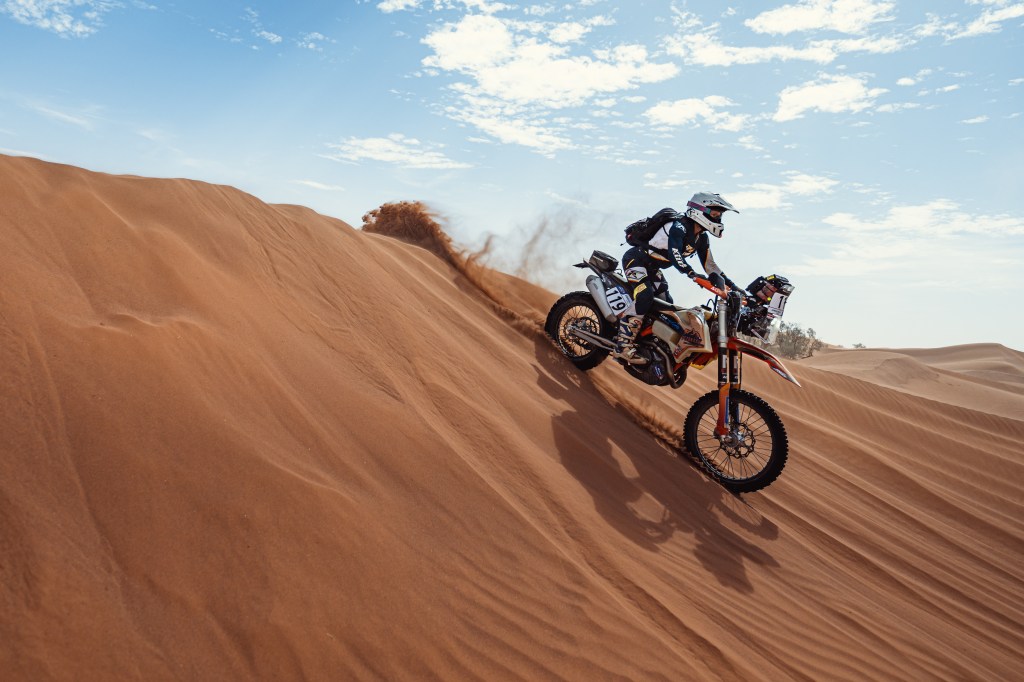 From rallies in Europe, Stephanie steadily built up her skills in rallying. Two year ago, she was ready to get into the desert and to conquer the dunes. “Before I did my first desert rally. I went to train in the dunes because I’ve never ridden in them. You need a lot of speed in the dunes. This is something I’m not very used to. I’m more about slower technical riding with stones and in the woods. So it’s generally faster and a more aggressive style of riding in the desert. You also need to learn to read the dunes and know what lines to take. With the speed you are going at, experience is very important so you can be fast enough in thinking about the direction, and adapting to the right lines when necessary.”